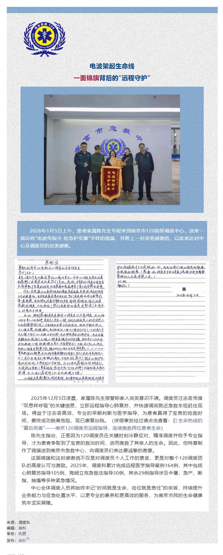 近年来,在市委市政府的坚强领导下,在省、市卫健委及相关部门的关心支持下,在推动院前医疗急救事业高质量发展上成效显著。中心现为江苏省院前急救质量控制中心挂靠单位、江苏省院前急救紧急医学救援基地、江苏省科普教育基地、江苏省医院协会院前医疗急救管理专委会主委单位、江苏省卒中学会院前急救专委会主委单位、江苏省爱国卫生教育和江苏省健康教育基地、长三角院前急救质控联盟/长三角院前急救质控联合体轮值主任单位、郑州市120紧急医疗救援中心合作共建单位、长江中下游城市群院前医疗急救联盟单位、南京市院前急救医疗质量控制中心挂靠单位、南京医学会院前急救分会主委单位、南京市院前急救从业人员培训基地、自救互救技能培训基地、美国心脏协会(AHA)培训基地、南京市团校教学基地及院前急救救护培训基地、东南大学医学院和公共卫生学院社会实践教学基地、南京特殊教育师范学院残疾人教学实践基地、南京市残疾人院前急救融合发展研究中心、江苏卫生健康职业学院合作共建“双师型”教师培训基地、徐州医科大学和江苏卫生健康职业学院急救教育行业产教融合共同体等。