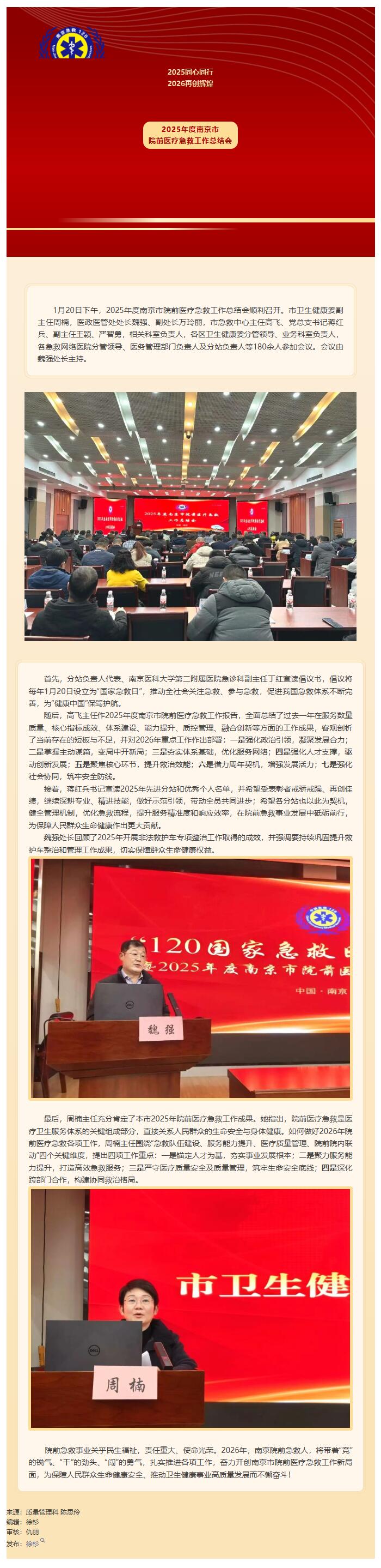 2025同心同行 2026再创辉煌 | 2025年度南京市院前医疗急救工作总结会顺利召开